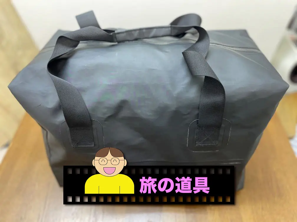 旅の道具 ポケットも何にもないただの長方形の入れ物ですが、そこがいいんです。ワークマン 防水ボストンバッグ