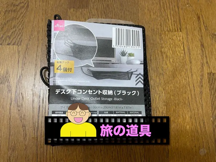 旅の道具 ダイソーのデスク下コンセント収納(網みたいなもの)を見て、ひらめきました。間違いなく旅の道具です。笑