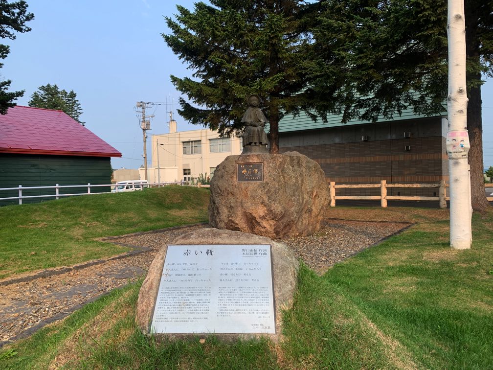 旅のスポット 北海道 留寿都村 赤い靴の像