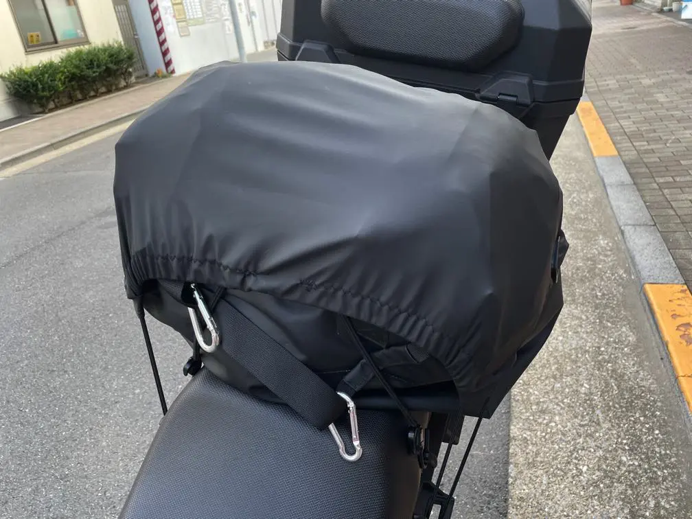ツーリング時に、突然の雨でも下の荷物が濡れない