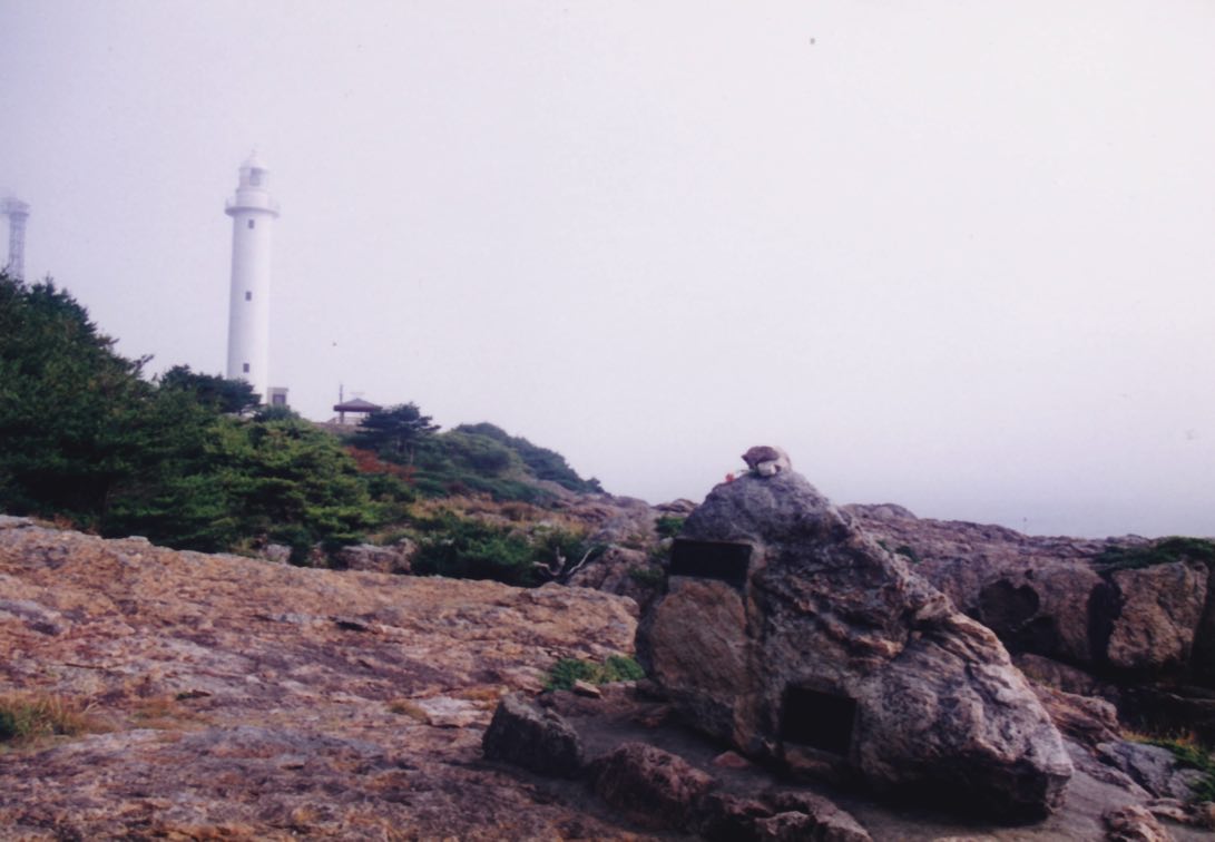 最初の灯台は、明治35年(1902)3月に建てられましたが、戦争で被災しました。