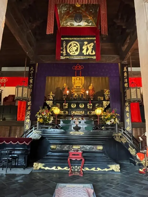 本堂の中の中央にご本尊様、右側に布袋尊と並んで鎮座しています。