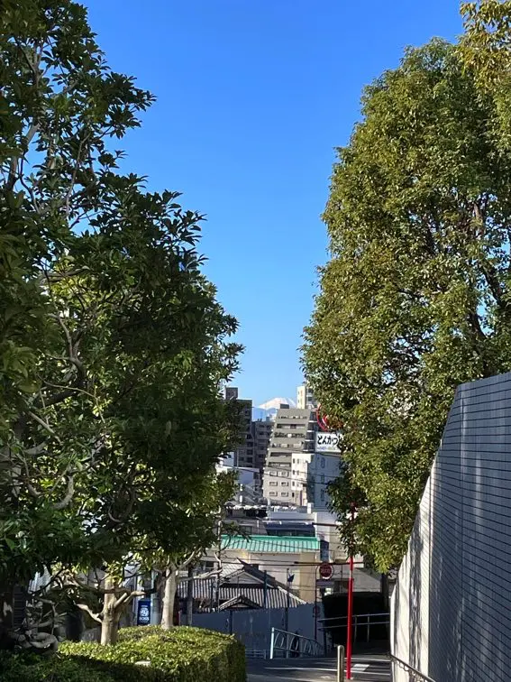 また、次に訪れる妙圓寺を過ぎて、目黒駅を通過、行人坂に入ると富士山が迎えてくれます。