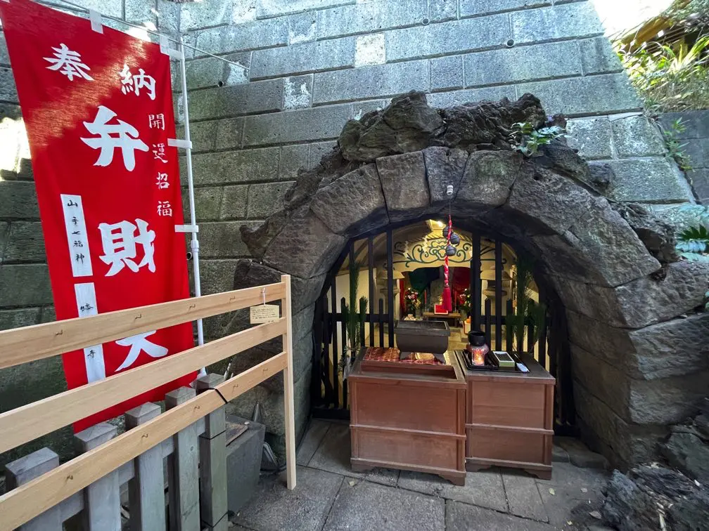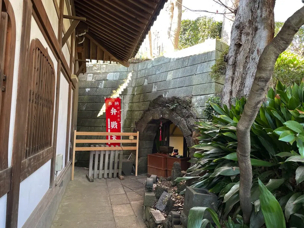 本堂の隣には岩窟の弁天堂があり、弁財天が祀られています。