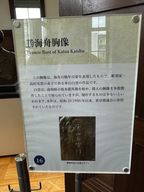 当時の作りを復元した部屋です。中央に勝海舟の銅像が設置してあります。