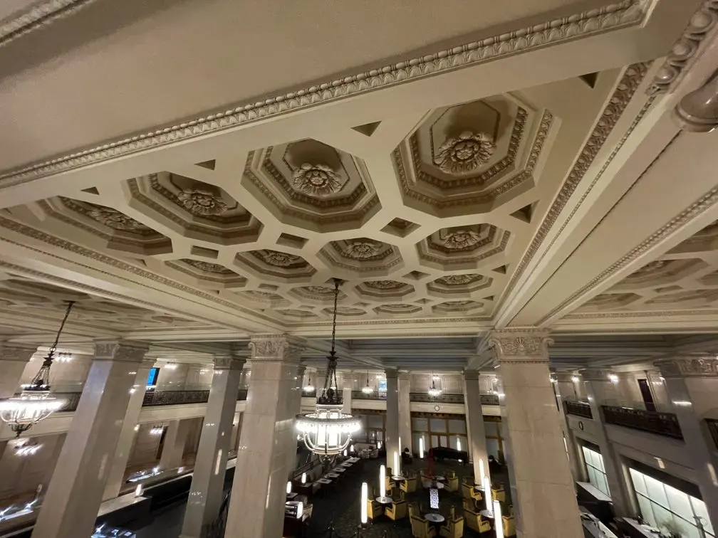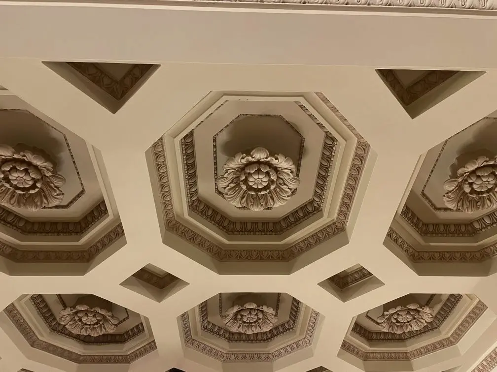 天井には、「ロゼット」と呼ばれる花型の装飾が施されています。