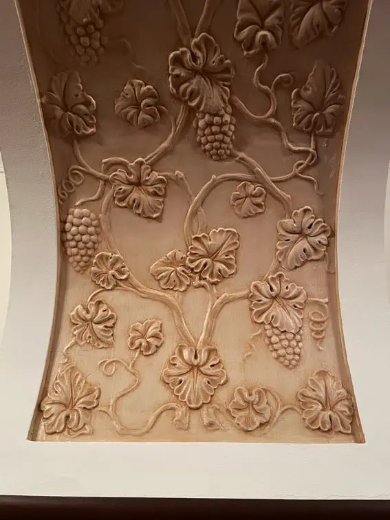 天井には曲線のアーチがかかり、こちらにはぶどうなどのレリーフが描かれています。