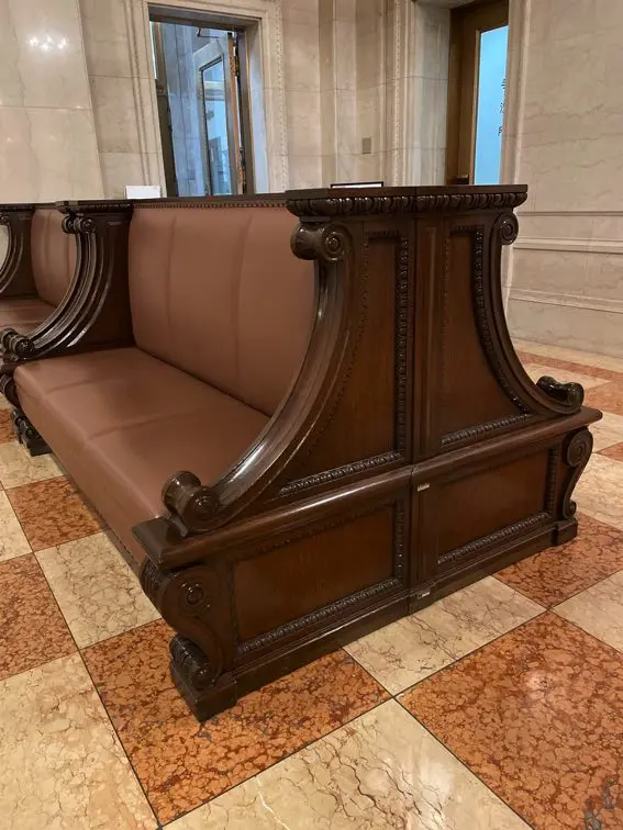 当時使用されていた、店頭営業室ロビー長椅子