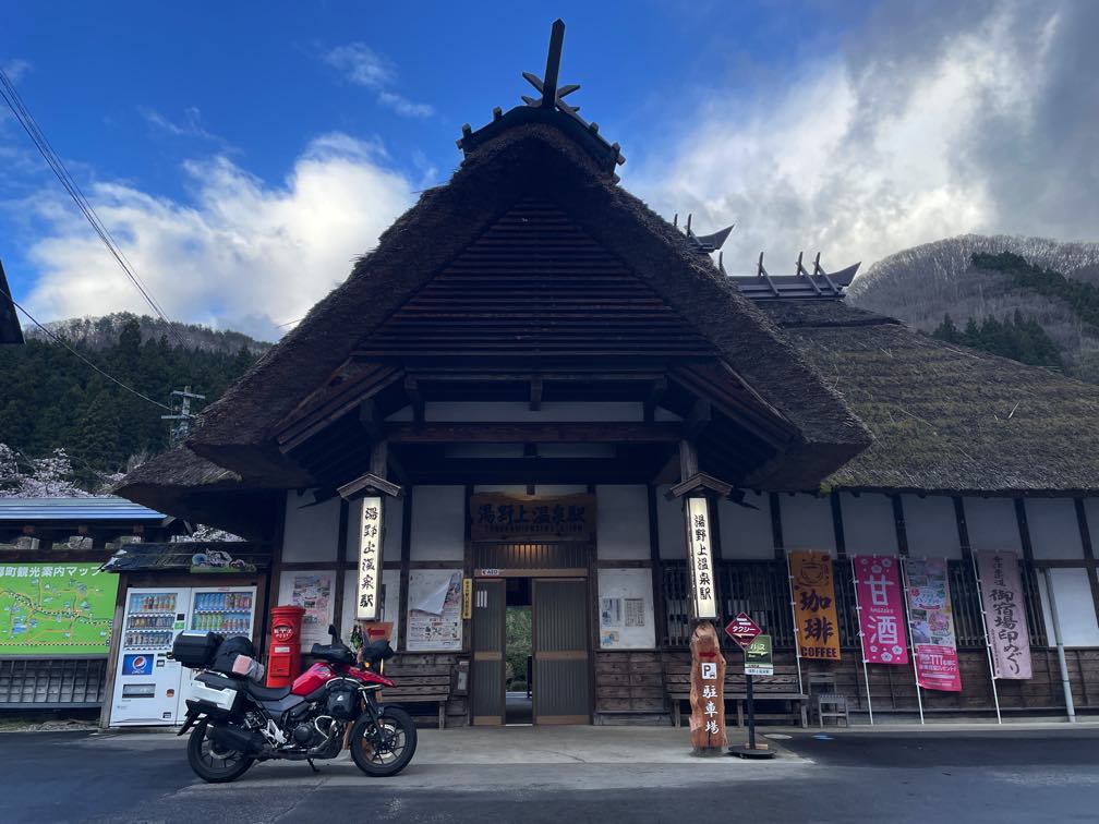 湯野上温泉の駅に到着し、お決まりのパチリ。