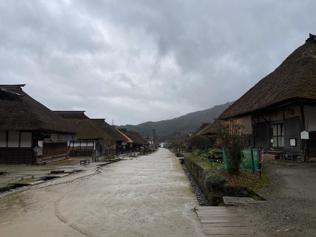 早朝の6時半前後に、大内宿に到着。到着と同時に雨がパラパラ。